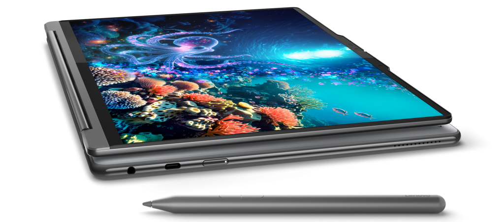 Další konvertabilní notebook s OLED displejem a procesory Intel Core Ultra. Obsahuje funkce Lenovo Aura Edition pro přizpůsobení, sdílení fotografií a přístup k podpoře. Díky flexibilnímu designu umožnujě tvůrcům pracovat dle jejich potřeb, ideálně třeba s podpodovaným dotykovým perem od Lenova.