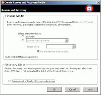 Pokud vlastníte notebook ThinkPad či stolní počítač ThinkCentre v menu Start -> ThinkVantage zvolte Create Rescue Media. Pokud vlastníte notebook či stolní počítač z řady Lenovo 3000 v menu Start -> Lenovo Care zvolte Create Recovery Media.