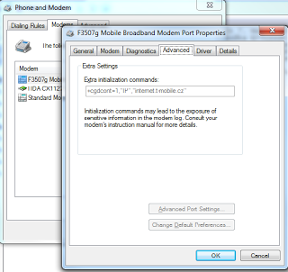 Ve Windows 7 jsem vytvořil nové dial-up připojení, vytáčené číslo je klasicky *99***1#. Pro jistotu je třeba ještě nastavit APN sekvenci, což se překvapivě hledá relativně hůře.