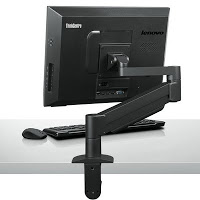 Jednoduché řešení dostupné od Lenovo. Pořídíte si držák, na něj přehodíte počítač i s monitorem. Vše je nadále posuvné nahoru dolu a i s monitorem můžete otáčet do stran.