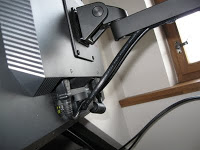 Volba jasně padla na Lenovo Radial Arm. Poměrně univerzální rameno, které je možno složit více způsoby dle toho, jaký stůl máte a jaké uchycení potřebujete a pak umožňuje i umístění na zeď. Jasně, existují jednoúčelová ramena a držáky, ale já chtěl něco s nápadem, v barvě černé a dobrým managementem kabelů.