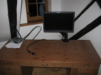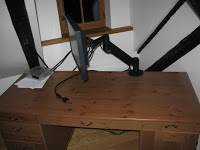 Samozřejmě jem místo na stole není jediným důvodem. Rovnou tím řeším další dvě věci. Jednak monitor na stole láká děti a to poslední, co potřebuji, je monitor na zemi, nejlépe rozbitý. Třetí důvod je pak možnost jednoduše a rychle vytočit monitor tak, aby byl směrem na postel, odkud děti koukají na pohádky.