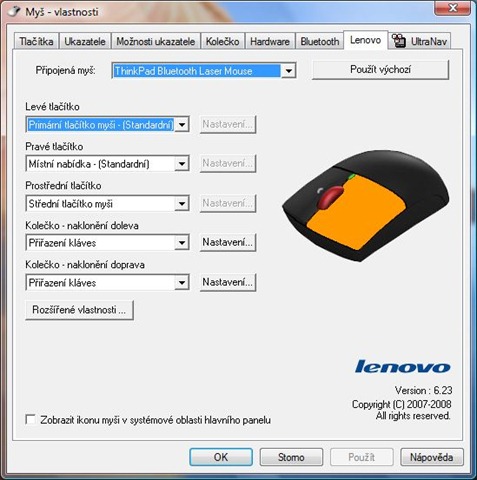 V dodávaném softwaru můžete nastavit funkci všech jednotlivých tlačítek dle vlastních představ, nechybí ani přiřazování kláves nebo klávesových zkratek. Není dokonce ani problém nastavit orientaci myši přímo dle vaší ctěné ruky. Líbí se mi i možnost nastavit zpřesnění ukazatele při podržení klávesy Shift (bohužel se mi především ve Windows 7 často stávalo, že se tato funkce z nějakého důvodu zasekla a pomohl pouze restart počítače, a tak jsem ji byl nucen přestat používat, i když na Windows Vista jsem ji měl opravdu rád). Poslední užitečnou funkcí ovladače je procentuelní ukazatel stavu baterií.