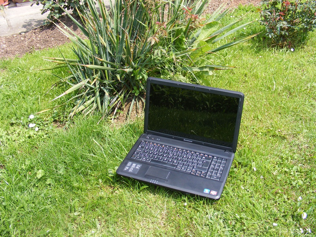 - Lenovo G550 (lesklé) – obecně se jedná o slušně zpracovaný notebook, kvalita konstrukce je velmi dobrá, ovšem o něco nižší než v případě matného modelu (dodatečné místo a otvory pro HDMI či ExpressCard si zřejmě vzaly svou daň). Klávesnice má standardní rozložení i s numerickým blokem, poměrně dobře se na ní píše. Touchpad příliš dobrý není, použijeme-li však ovladače operačního systému, chová se podstatně lépe a větší problémy s ním až na tužší tlačítka nejsou. Výkon dostačuje na starší hry, ty nové spustíte maximálně na nízké detaily. Ventilátor se spouští nárazově, příliš příjemný zvuk nemá.