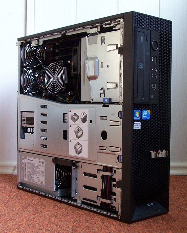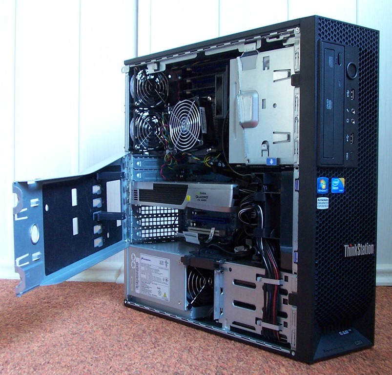 Kromě nejnižšího modelu (E20) jsou skříně ThinkStationů zkonstruovány pro údržbu a přístup výhradně bez nutnosti použít jakékoliv náčiní – vystačíte si proto jen s rukama. To začíná u bočnice s otevíracím mechanismem (včetně zámku), pokračuje přes pevné disky či karty PCI a končí u optické mechaniky. Je nutné poznamenat, že v této třídě počítačů se samozřejmě jedná o standard, neřknu-li nutnost, ovšem je to příjemné.