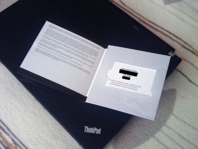 Co v balení najdeme? Pouze několikastránkový sešitek s potřebnými kontakty na servis a záručními podmínkami. Na poslední straně je pod strhávací krytkou vytištěné číslo záruky a PIN, kterými svou záruku po internetu zaregistrujete. Samotná registrace mi zabrala několik minut (i když z nějakého důvodu byl text na webu tak malý, že jsem musel zvětšit zobrazení prohlížeče na 700%), ověření registrace trvalo několik desítek minut a samotné přiznání necelý den (Lenovo má oficiální lhůtu do 30 dnů).