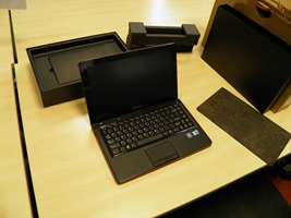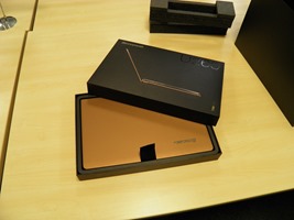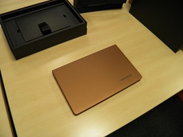 Styl začíná už při vybalování – v běžné kartonové krabici najdeme další dvě menší, už rafinovaně potištěné krabice. V jedné z nich se nachází napájecí adaptér, v té druhé, propracovanější už samotný notebook s návodem k použití. Postup vybalování ukazují fotky níže.