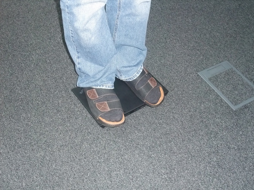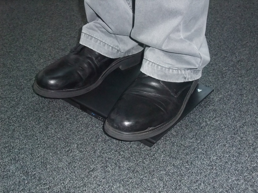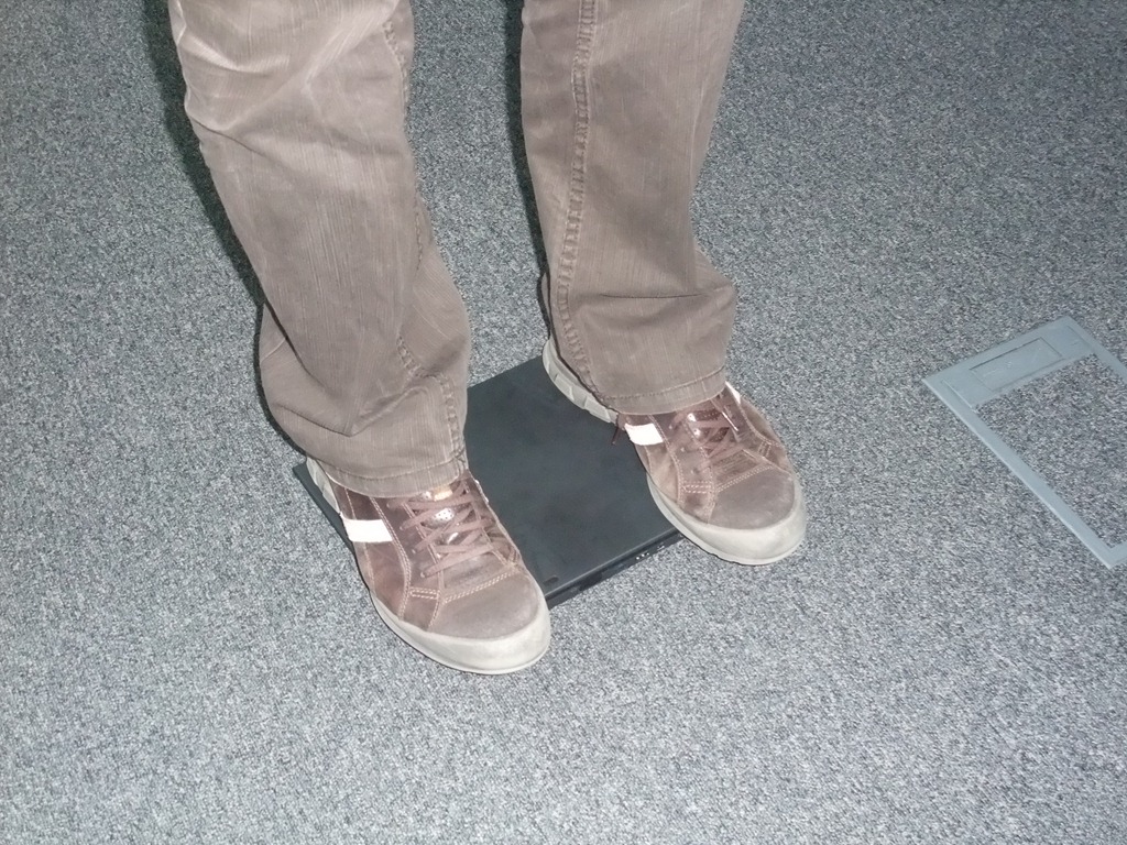 Dodám jen, že z pohledu ergonomie funguje stání na notebooku stejně jako na běžné digitální osobní váze. Je vhodné nejprve rozkročit nohy zhruba na šířku pánve, chodidla směřují rovnoběžně kupředu. Poté postupně jednou a druhou nohou nastoupíme na černou hořčíkovou platformu. Jen žádné číslo se neukáže – což je možná dobře, člověk si svou váhu nemusí pořád připomínat. Pro zpestření se můžeme na notebooku i trochu pohoupat z pat na špičky (ano, i to jsme zkoušeli). Mimochodem, vzpomínáte na zlomený ThinkPad T410s?