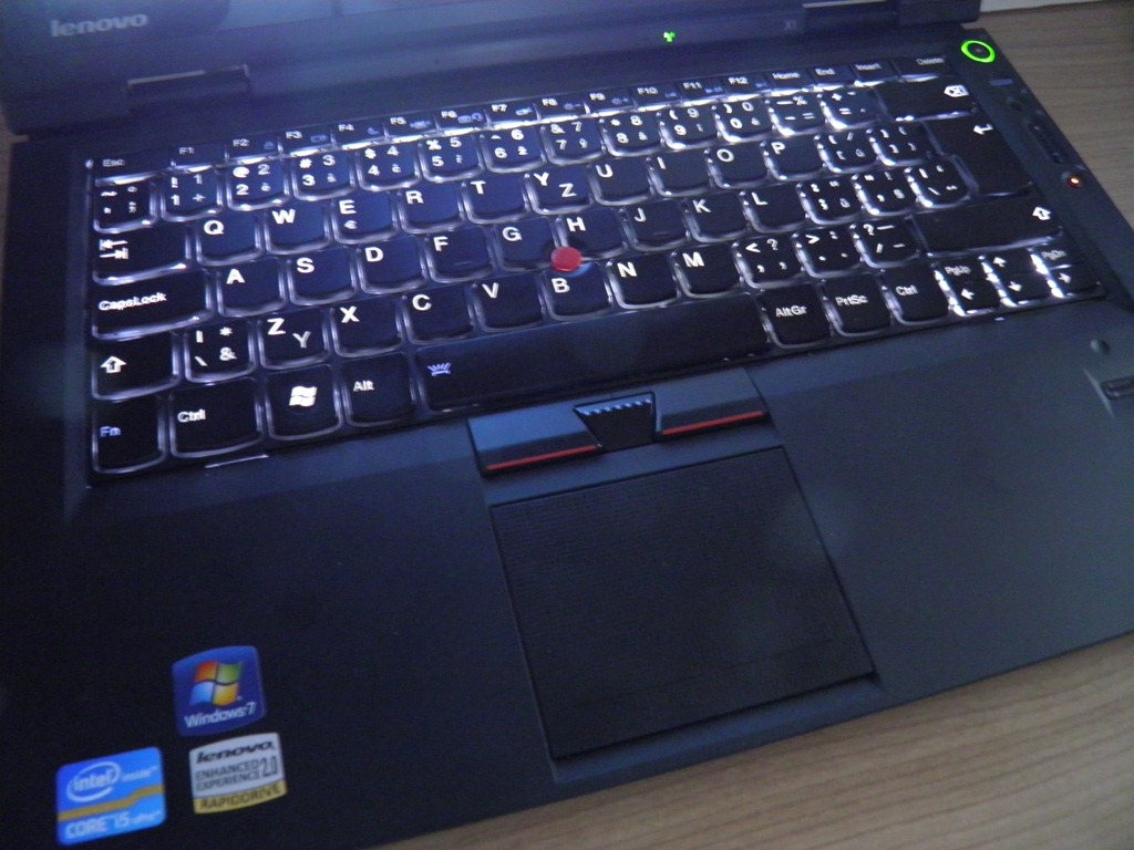 - Displej v ThinkPadu X1 má úhlopříčku 13,3″, rozlišení 1 366 x 768 bodů (z mého úhlu pohledu pro tuto úhlopříčku ideální). Svítivost je skutečně nadstandardní a jasně vyniká nad běžnými displeji, ovšem přesto je v exteriéru špatně čitelný, čemuž lesklé Gorilla glass nepomáhá – nejedná se o displej ryze do exteriéru. Kvalita zobrazení je průměrná, bílá je lehounce dožluta; prémiovému X1 by určitě slušel IPS panel.