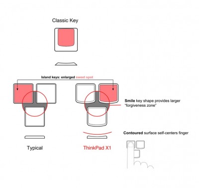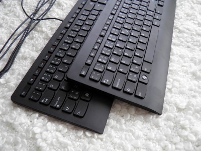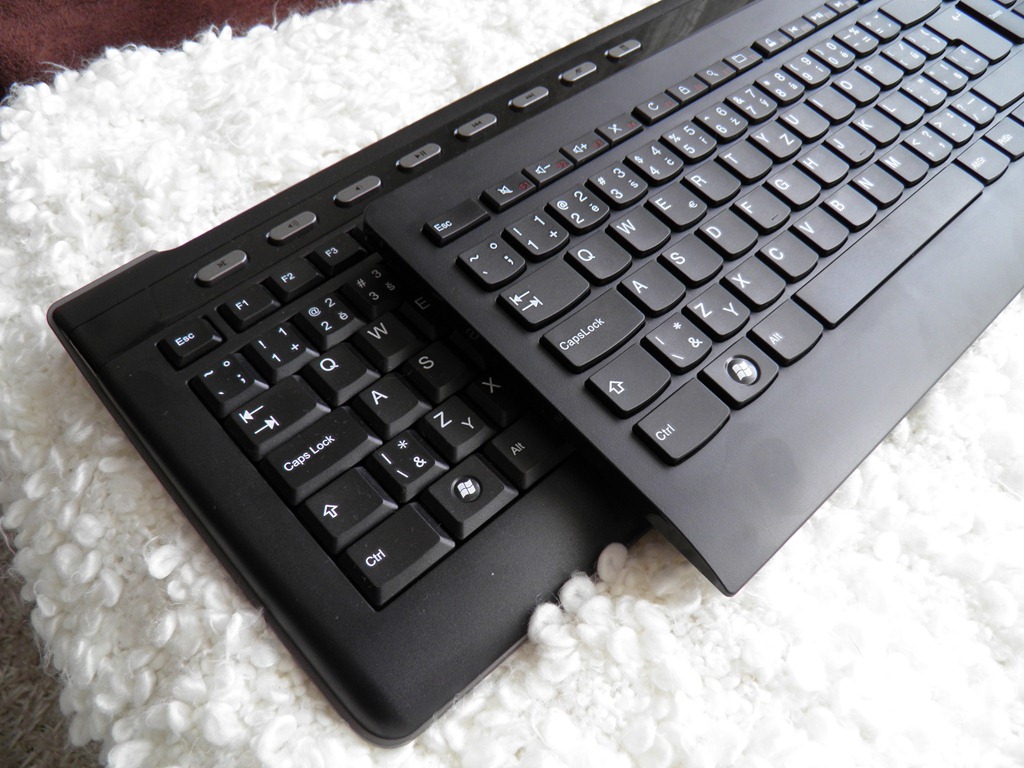 Rozložení klávesnice je stejné jako u minulé generace Ultraslim, nicméně oproti běžným desktopovým klávesnicím mírně zhuštěné, ale na člověka navyklého na notebookové klávesnice působí stále komfortním, prostorným dojmem, ačkoliv je kompaktnější. Přeskupený byl totiž blok s klávesami pro pohyb v textu, kde dominuje velké Delete (pro Lenovo typické). Kurzorové šipky jsou posunuté tak, že zasahují mezi alfanumerické klávesy, numerický blok je díky tomu blíž. Horní řada kláves je kromě zvětšeného Escape, Fn, Break a Insert věnovaná speciálním funkcím (ovládání zvuku, multimédií, obnovení obrazu, zámek Windows, vyhledávání, správce souborů, tisk). F1-F12 je přístupné pomocí červeného Fn. No a poslední větu tohoto odstavce věnuji Print Screenu mezi pravým Altem a Controlem.