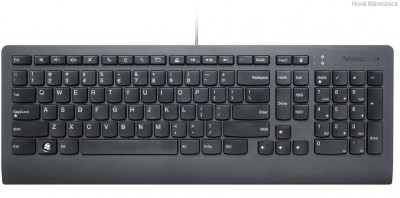 Nově se dodávají desktopy Think s aktualizovanou klávesnicí (poprvé jsem se s ní setkal u ThinkCenteru A70): stále se jedná o drátovou USB verzi, nicméně s novým designem, jemuž vévodí chiclet provedení. Klávesnice je stále pohodlná, tichá, ovšem s mělčím, gumovějším chodem, modernějším rozložením, díky kterému je skladnější a tenčí, ale především upřednostněnými vedlejšími funkcemi před F1-F12 (to je samozřejmě možné přepnout). Jinými slovy tak, jak klávesnici známe z řady Edge. Příjemnou novinkou je voděodolné provedení s odtokovými kanálky (podobně jako u ThinkPad USB Keyboard with TrackPoint).