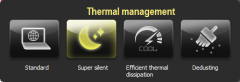 Ventilátor v Z570 má standardně výpusť na levém boku a pozitivní zprávou je, že má skutečně velmi příjemně tichý, nerušivý chod. Za normálních okolností se nikdy hluk nezvýší nad minimální otáčky, což znamená, že chlazení stěží přes pevný disk postřehneme. Ve vyšším zatížení slyšíme jen silnější šumění. Potěší vyhrazené tlačítko pro změnu režimů chlazení, které umí aktivovat také tichý chod a notebook tak v podstatě úplně umlčí (je nutné si přirozeně zvyknout na mírně vyšší teploty kolem 50°C), poté občas jen vyfoukne teplý vzduch. Další funkcí je klasicky čištění chlazení pulzováním silných otáček ventilátoru.