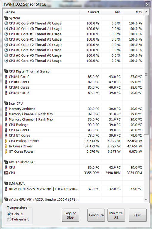 Na obrázcích níže uvádíme ještě teploty komponent W520 během celého testu SPECviewperf 11 a následně také po 20 minutách maximální zátěže (nejenom) procesoru Prime95. Další informace o teplotách a chlazení se dozvíte v našem předchozím článku.