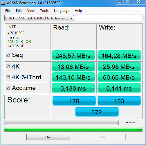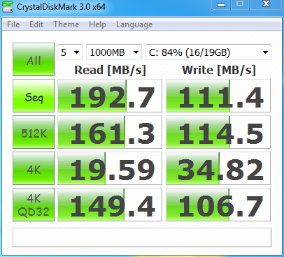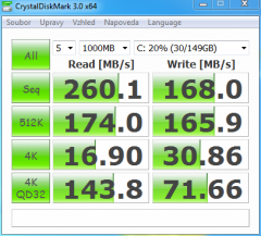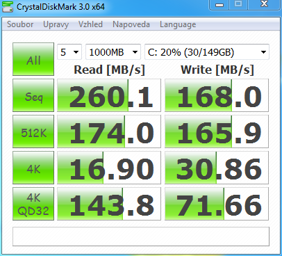 Otestovali jsme 160GB variantu (firmware 0302), která má dle specifikací maximální sekvenční rychlost 270/165 MB/s (čtení/zápis), nejvyšší rychlosti nabídne 600GB varianta. Více už poví testy, u kterých okomentuji jen skutečně výbornou rychlost práce s malými 4K bloky, zvlášť při jejich zápisu.