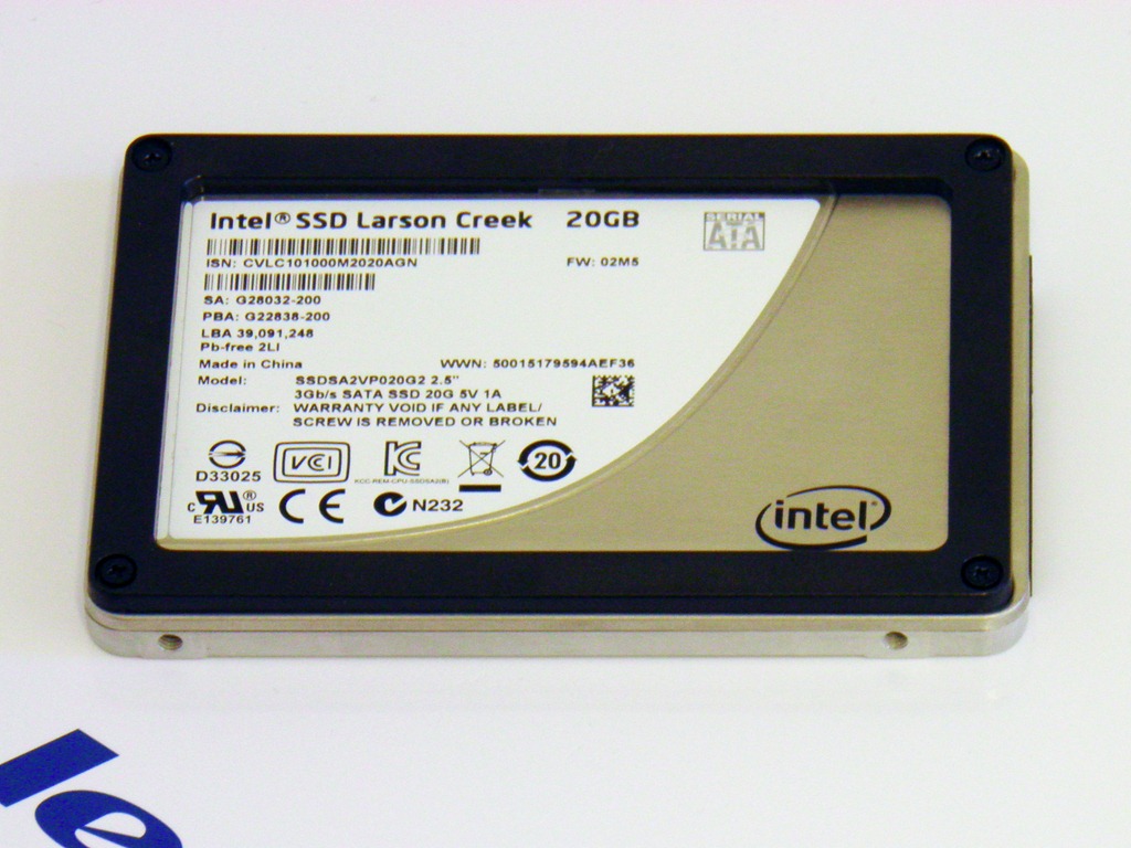 Larson Creek využívá NAND paměti klasického 34nm výrobního procesu, nicméně se jedná o čipy SLC (stejně jako u hybridních disků), které mají oproti MLC samozřejmě výrazně vyšší životnost. Důvod je prostý – u takového úložiště se počítá s větším počtem přepisů. Rychlosti jsou oproti “rychlíkovi” 320 nižší, dosahují tak papírově 200/105 MB/s sekvenčního čtení/zápisu, rozhraní je tak stále SATA 3 Gb/s.