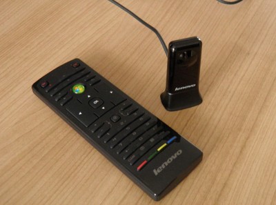 Dalším samostatným příslušenstvím v balení je dálkové ovládání pro Media Center s USB přijímačem. To přijde vhod nejenom díky vestavěnému televiznímu tuneru. Těší mě, že se nejedná o obyčejný membránový ovladač, ale o trochu lepší variantu s běžnými tlačítky. Ovladačem je možné počítač zapínat i vypínat.