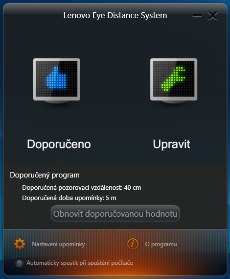 Celkem zajímavá je dvojice aplikací pro automatickou ergonomii: automatická regulace jasu displeje pomocí aplikace Dynamic Brightness System a Eye Distance System, který zase kontroluje vzdálenost uživatele od počítače a pravidelně jej upozorňuje, pokud nemá správnou vzdálenost.