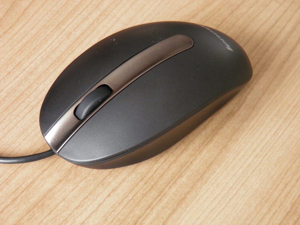 A myš? Ta je zcela standardní optická trojtlačítková, symetrická, tedy vhodná pro leváky i praváky, s velmi pohodlným kolečkem i pohodlným klenutím, takže padne dobře do ruky. Stisk kláves je občas v určitých pozicích rukou trošičku méně pohodlné, celkově je ale myš zcela v pořádku.