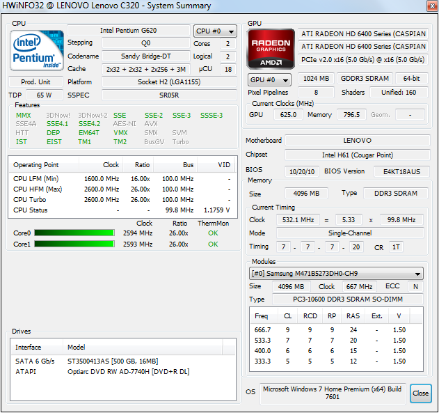 Z hardwarové konfigurace je zcela jasné, jaký výkon můžeme od základního domácího all-in-one Lenovo očekávat: k dispozici je dvoujádrový procesor Intel Pentium s maximální frekvencí 2,6 GHz. Procesor je ochuzený o většinu vymožeností rodiny Sandy Bridge (hlavně o Turbo Boost a Hyper Threading, neumí se tedy “přetaktovat” ani nedokáže působit jako “virtuální čtyřjádro”), nicméně i přesto se jedná o dostatečně výkonný čip, který uživatele blokovat v běžném domácím nasazení ani zdaleka nebude. Grafický čip je na stejné úrovni jako procesor: jedná se o lowendový čip AMD Radeon, díky kterému si na počítači zahrajeme méně náročné počítačové hry, ale samozřejmě plynule rozhýbe HD multimédia, což je jeho hlavní určení. Celkově je tak potřeba říct, že je sestava zcela vyvážená, pro běžné multimediální nasazení (bez náročných počítačových her) zcela dostatečná.