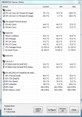 Vlevo: teploty standard; vpravo: teploty při nicnedělání (idle)