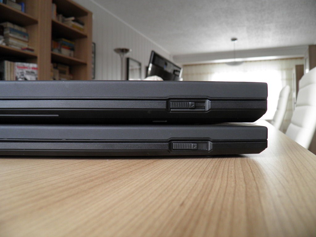 Jak jsem přímo naznačil, základní rozdíly poznáme už navenek, z fyzických parametrů. Zatímco půdorys obou notebooků je v podstatě (až na pár milimetrů tady a támhle) shodný, na tloušťce ušetřila T420s v různých částech oproti T420 4 – 9 mm. Samo o sobě to nemusí vypadat jako významné číslo, možná ani v procentuálním rozdílu to nepřipomíná žádné drama (13 – 30 %), ale ve skutečnosti, pokud vezmeme notebook do ruky, nebo oba notebooky vidíme vedle sebe, je to skutečně výrazný rozdíl.