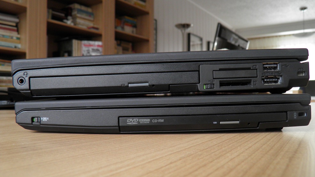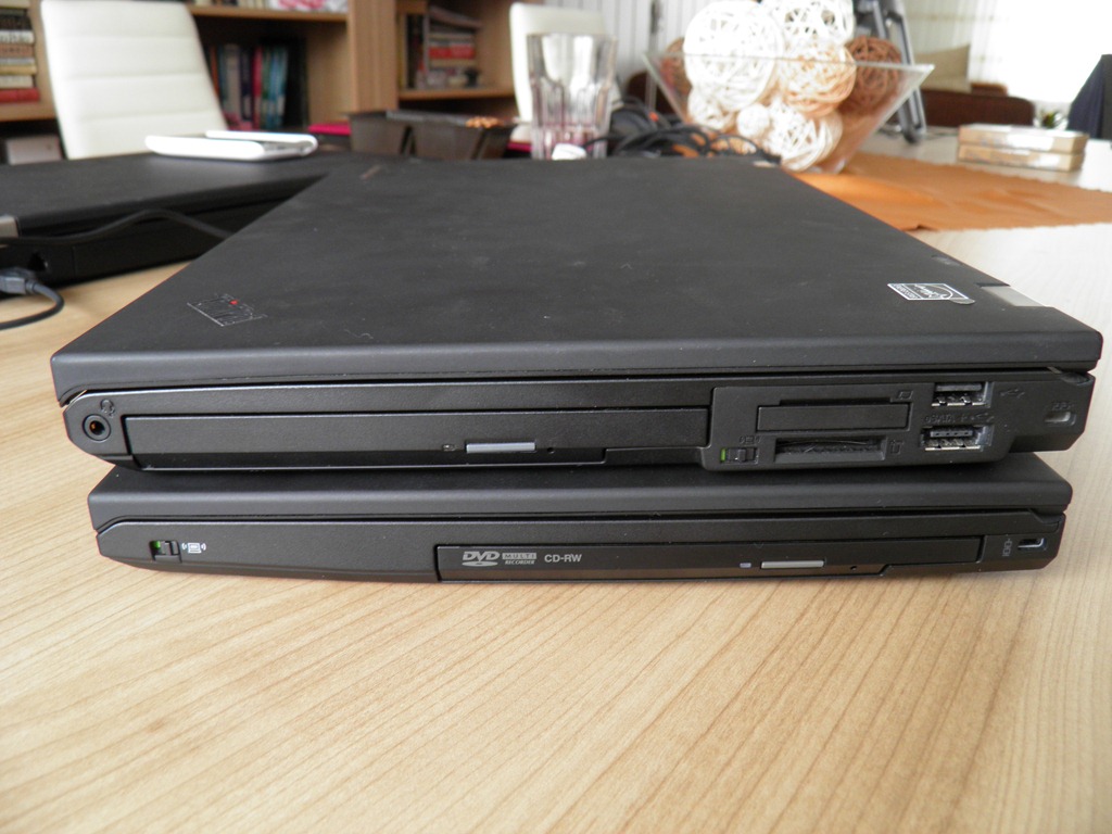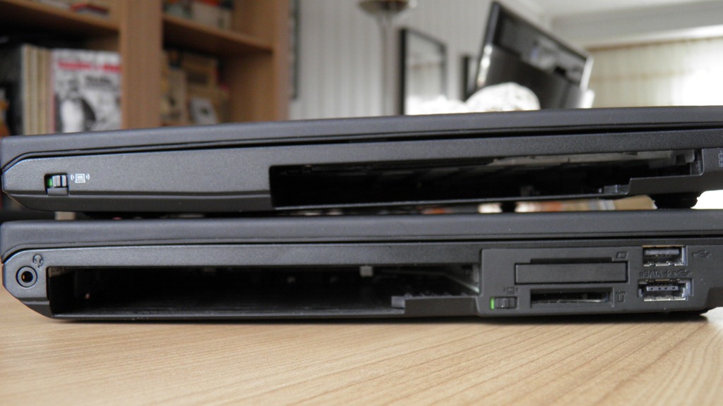 Komické však je, že Lenovo stále nebylo schopné vyrobit příslušenství pro UltraBay Enhanced, takže např. všechny originální UltraBay adaptéry pro pevný disk jsou v tenčí Slim verzi. Když je zasunete do širší Enhanced šachty, budete mít v notebooku škvíru (viz. foto T420 se slim mechanikou z T420s).
