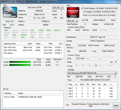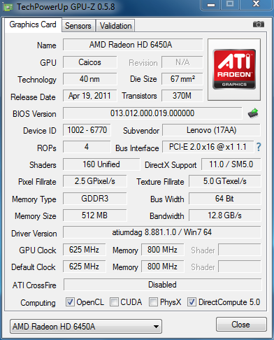 • AMD Radeon HD 6450A (512 MB GDDR3 64bit)