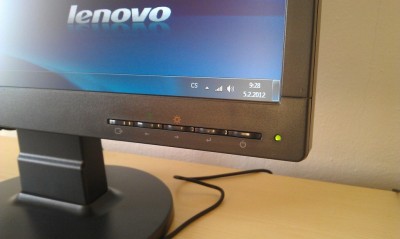 K IdeaCenteru Q180 se nám podařilo získat (na krátký test konzolky pro připevnění mini desktopu) také nejzákladnější monitor, který Lenovo pod svým názvem nabízí, a sice D186. O této “externí obrazovce” se toho skutečně nedá příliš psát, o čemž svědčí také cena, která se drží na 2 000 Kč i s DPH. Jedná se o 18″ LCD monitor s matným panelem s CCFL podsvícením, “HD Ready” rozlišením 1 366 x 768 bodů, který výrobce nabízí skutečně jako tu nejlevnější alternativu ve své nabídce. Kvalita displeje je i na poměry TN panelů ve stolních monitorech podprůměrná, pozorovací úhly nejsou dobré (zhruba na úrovni notebooku), barevné podání je ale celkem standardní.