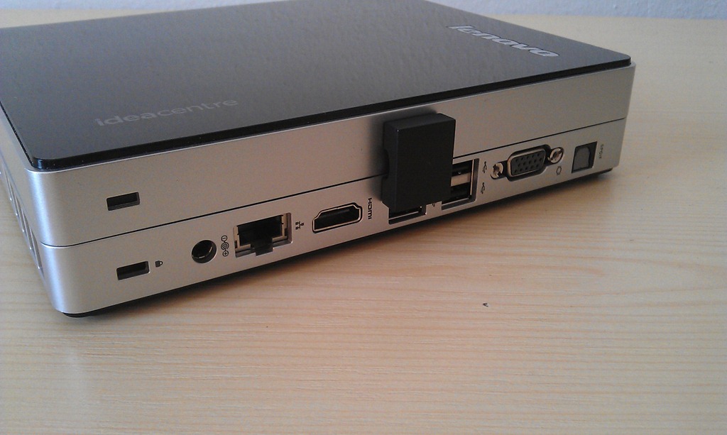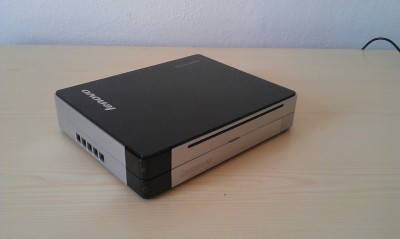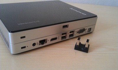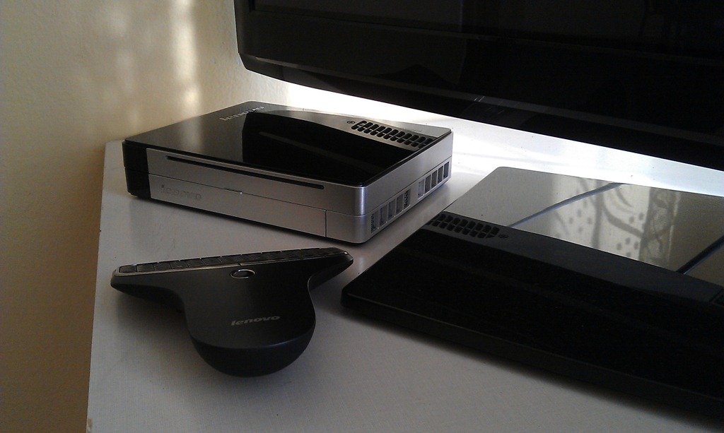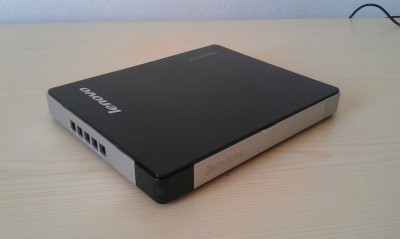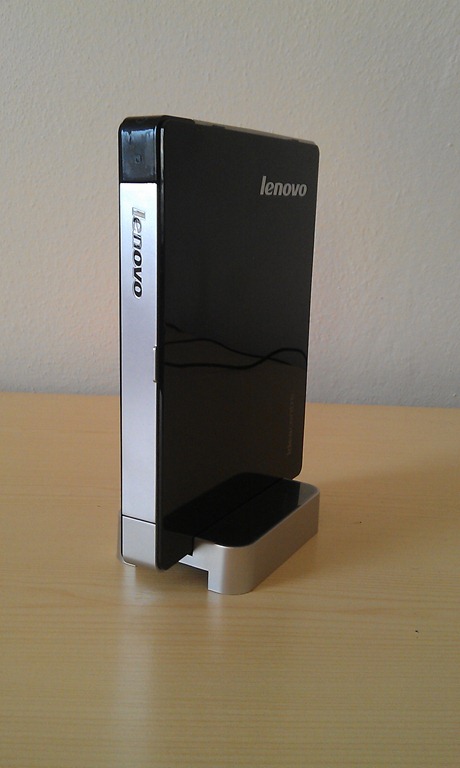 3. Poslední možností je, jak jsem nastínil, používat Q180 jako domácí multimediální centrum s televizí, reprosoustavou a ideálně také dálkovým ovládáním (pomocí bezdrátové Lenovo mini klávesnice – brzy přineseme článek). Q180 je vybavená gumovými nožičkami pro položení naležato.