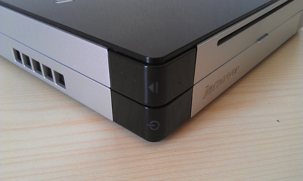 Zajímavě jsou řešená tlačítka a kontrolky na samotném počítači – všechna jsou (jak je pro Lenovo typické) bílé a včetně zapínacího tlačítka a vysouvání DVD mechaniky jsou umístěná v rohu, jsou tak dostupná jak v poloze vertikální, tak horizontální. Řešení je dobré také proto, že nezáleží na tom, kde tlačítko stiskneme – vždy bude fungovat a udělá to, co má.