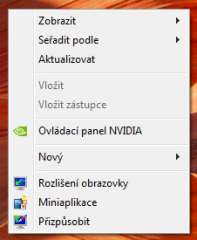 - Spustíme ovládací panel nVIDIA (např. pomocí kontextové nabídky Plochy, kterou vyvoláme pomocí pravého tlačítka myši).