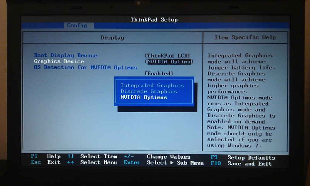 - V BIOSu notebooků s přepínatelnými grafikami je obvykle možné přepínat minimálně mezi dvěma z následujících režimů (ThinkPady Classic umí všechny tři):