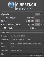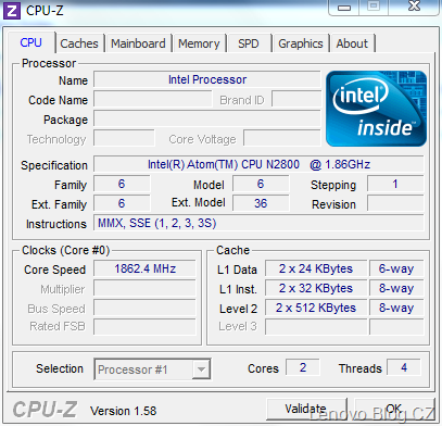 Parametre testovaného mini notebooku: