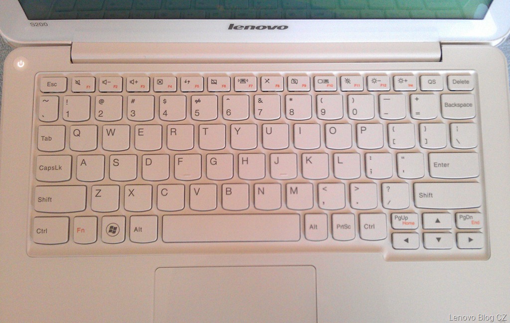 Mini notebook S200 je vybavený chiclet klávesnicou, ktorá je 6 radová a po tlaku sa významne neprehýba v žiadnej svojej časti, mierne v strednej. Dostatočná vzdialenosť medzi klávesmi a nižšie položenie klávesnice predstavujú vhodnú kombináciu pre príjemné a pohodlné písanie. To po niekoľko dňovom testovaní môžem potvrdiť, na písanie na chicklet klávesnici sa zvyká veľmi rýchlo.