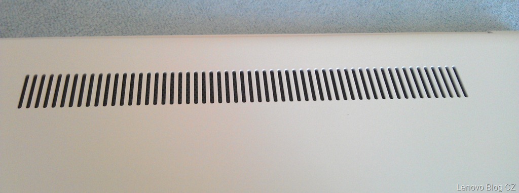 Na záver niečo o chladení, to je umiestnené v zadnej spodnej časti a pri pravom pánte, je tiché a pri bežnej činnosti sa nijak zvlášť mini notebook nezahrieva. Možno by k lepšiemu chladeniu pomohli otvory aj na boku, no pri mini notebookoch takejto hrúbky to nie je jednoduchá implementácia.