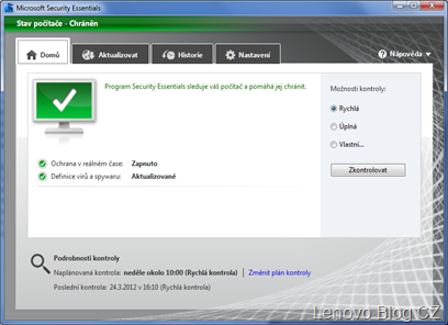 Na víkend sme si pre vás na Lenovo Blogu CZ pripravili bližší pohľad na jeden z najlepších antivírusových programov poskytovaných zadarmo, a tým je Microsoft Security Essential. Konkrétne sa pozrieme na jeho základné vlastnosti, bližšie si popíšeme jeho funkcie a na záver osobné skúsenosti.
