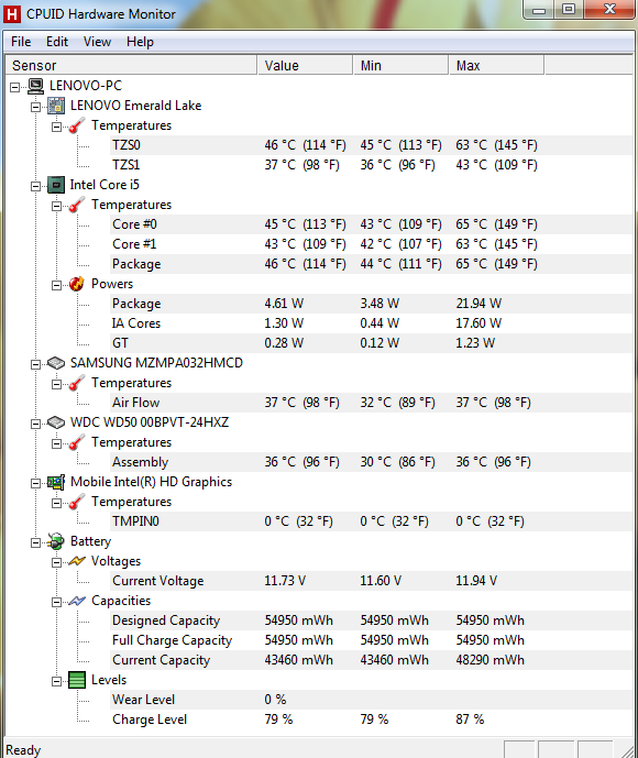 Pre lepšiu predstavu výkonu vám ponúkame výsledky rozličných testov, ktoré sme vykonali na U400. Taktiež podporované informáciami o stave a výkone HDD a SSD, spolu s teplotami jednotlivých komponentov. V prvom teste (Cinebench) je nutné poznamenať, že test bežal na integrovanej Intel HD grafike z dôvodu neschopnosti AMD grafiky sa automaticky prepnúť ak je spustená OpenGL aplikácia.