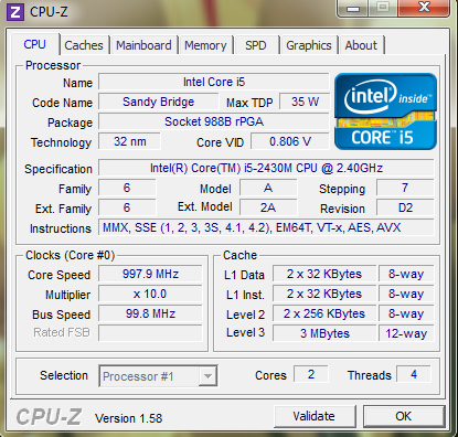 • Intel Core i5-2430M