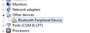 Příčinou je zřejmě z nějakého důvodu chybějící ovladač periferních zařízení Bluetooth ve Windows, jak ukazuje také snímek obrazovky výše.