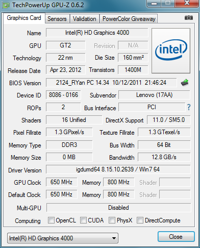 - Intel HD 4000 / nVIDIA NVS 5200M
