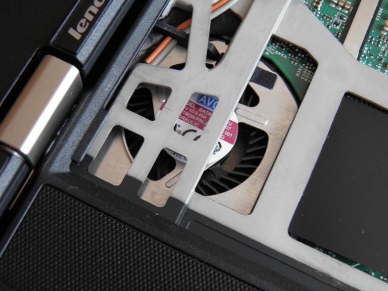 T430s mě potěšila v oblasti hlučnosti: minulá generace sice nebyla hlučná, ale k tichým notebookům taky nepatřila. Mezi její bolístky – pokud jste ručně nekontrolovali otáčky TPFanControlem – patřily zbytečně vysoké otáčky ventilátoru a při ještě vyšších rychlostech „fénový efekt“. V T430s byl použitý shodný miniaturní ventilátorek, nicméně – zřejmě díky úspornější architektuře a dalším optimalizacím – funguje na nižších otáčkách (akusticky tak o 30-50 %), a tak – ačkoliv běží na nižších otáčkách často – je notebook znatelně tišší než předchůdce, ač většinou úplně tichý není. Zajímavé je, že za vysokého zatížení je T430s až výjimečně tichý stroj.