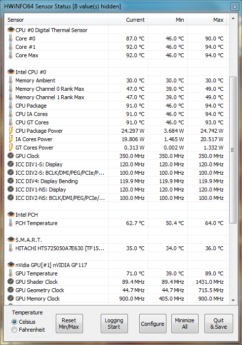 Teploty po 20 minutách extrémní zátěže kombinací FurMarku a Prime95