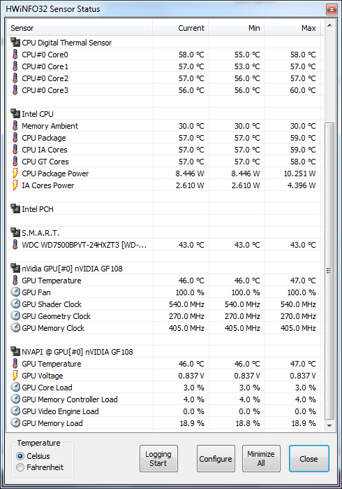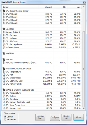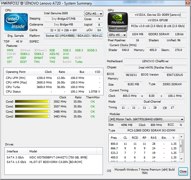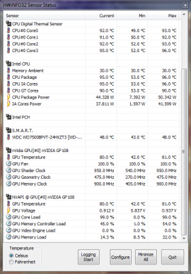 Počas testu dosahovali teploty procesora 91° až 96°, a grafiky 80° až 81°. Sú to síce vysoké teploty, ale u 4-jadra je to pochopiteľné.