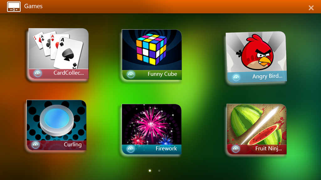 Poskytuje priestor pre jednoduchý prístup k trom základným centrám: Entertainment, Care a Maintenance. Tie si môžete zobraziť buď usporiadane vedľa seba (viď. prvý obrázok) alebo vo forme kartičiek (viď. obrázok vedľa).