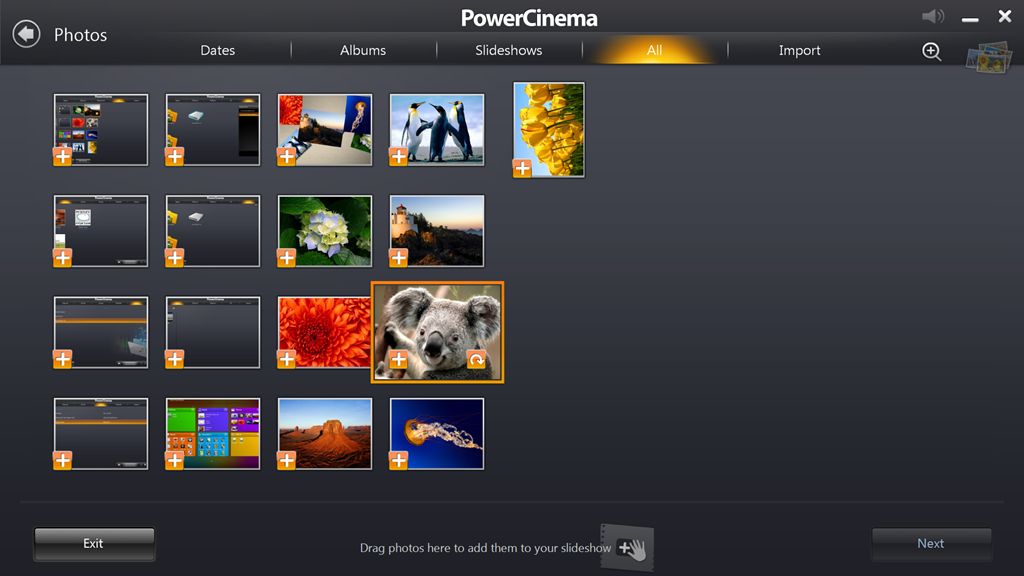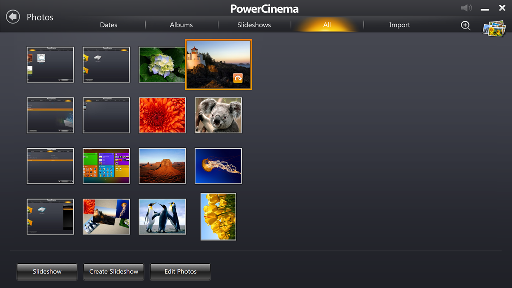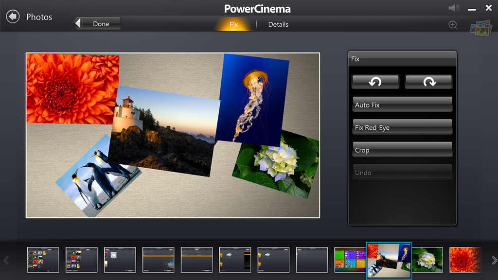 Fotky poskytujú nielen jednoduchosť a priehľadnosť, ale aj možnosť základnej úpravy fotiek. Pre ešte lepšie prezeranie je k dispozícií možnosť vytvorenia prezentácií. K možnostiam zobrazenia patrí: Podľa dátumu, Albumov, Prezentácií, Všetky. A opäť import (vloženie) ďalších fotiek.