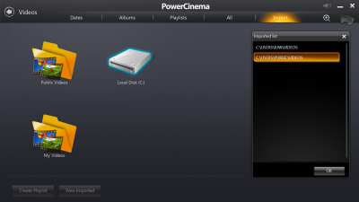 Videá vám ponúkajú jednoduchý prehľad vašich videí a vytvorenie playlistu pre pohodlné prehrávanie. Môžete si vybrať medzi týmito možnosťami zobrazenia: Podľa dátumu, Albumov, Playlistov, Všetky. K dispozícií je samozrejme časť zaoberajúca sa importom (vložením) ďalších videí.