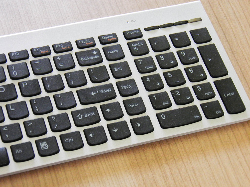 K A720 je dodávaná bezdrôtová 6-radová chiclet klávesnica s ergonomicky tvarovanými klávesmi a samostatnou numerickou časťou. Nad touto časťou je umiestnená dióda indikujúca stav batérie a funkčné klávesy pre ovládanie hlasitosti a Lenovo Vantage Technology. Písanie na klávesnici je príjemné, odozva je dobrá, sú síce trochu tuhšie. Rozloženie je rovnaké ako u väčšiny IdeaPad zariadeniach. Jediná vec, ktorá mi výraznejšie vadí je menšia veľkosť niektorých kláves. Pevnosť je veľmi dobrá k prehybu dochádza len na bokoch pri vyššom tlaku. Výdrž nemôžem hodnotiť.