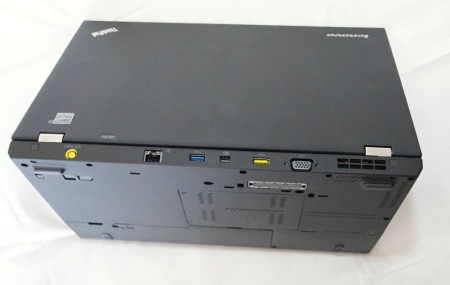 Jedna z věcí důležitých pro pracovní notebook je konektivita. V tomto ohledu T430s nezklame. Většina konektorů se nachází na zadní straně notebooku. Jmenovitě se jedná o gigabitový ethernet, permanentně napájené USB 2.0, mini DisplayPort (v konfiguraci s procesorem i7 Thunderbolt), USB 3.0 a VGA výstup. Na levé straně najdeme USB 3.0, sloučený jack pro sluchátka i mikrofon a ExpressCard/čtečku SD karet a čtečku SmartCard. Na pravé straně je pak už jen Ultrabay s mechanikou a mechanický vypínač pro bezdrátovou komunikaci. Pochopitelně nesmí chybět dokovací konektor na spodu notebooku. Umístnění většiny konektorů zezadu notebooku mi poměrně vyhovovalo, protože jsem pak neměl stůl plný kabelů a všechny byly poměrně úhledně schované. Pro časté připojování a odpojování flash disků apod. mi stačilo jedno USB 3.0 na levé straně. Trochu nešťastně je umístěna zdířka na 3,5mm jack. Pokud máte u reproduktorů „zalomený“ jack, tak si bude docela překážet se zařízením, připojeným do USB.