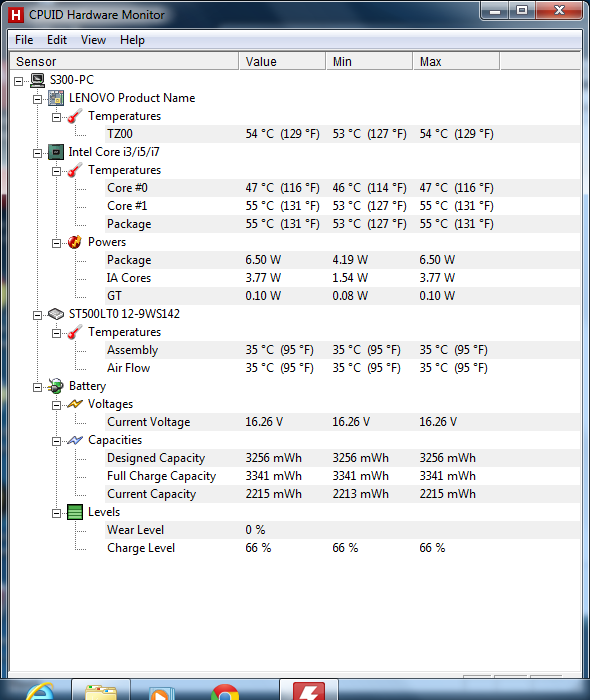 Pri vysokom zaťažení je chladenie výraznejšie počuteľné, no nijak významne neruší. Dochádza, ale k zahrievaniu plochy v rozmedzí dolnej ľavej časti klávesnice a ľavého rohu touchpadu, kde teploty dosahujú okolo 40°, čo nie je nič nepríjemné a pohodlné písanie to nijak zvlášť nenarušuje. Jedinou vecou, ktorá prekvapuje je fakt, že spodná strana notebooku má nižšiu teplotu (max. 35°) ako mnou zmieňovaná vymedzená teplejšia oblasť v hornej časti. Na druhej strane to predstavuje výhodu pri cestovaní a S300 položenej na nohách. Celkovo by som aj pri vyššej záťaži dala chladeniu známku 2 za veľmi kvalitné chladenie s trochou obrátenou max. teplotou, ktorá tento krát nie je na spodnej strane.