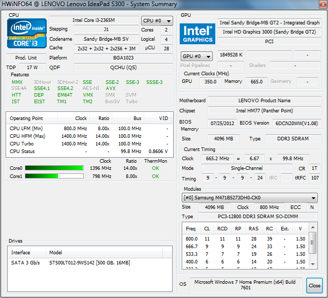 - Intel Core i3-2365M 1.40 GHz Sandy Bridge – nízkonapäťový procesor